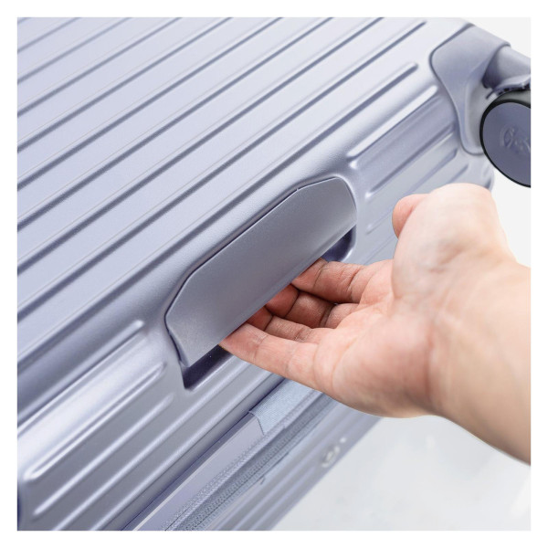 Skořepina z lehkého a extrémně pevného polykarbonátu, materiálu používaného i při výrobě neprůstřelného skla, spolehlivě ochrání všechny vaše věci. Elegantní matně-metalický povrch doplňují ochranné kovové rohy, které efektivně tlumí nárazy. Cestování po rušných letištích se stane hračkou díky tichým a plynulým dvojitým kolečkům. Pohodlná gelová madla a lehká teleskopická rukojeť zase zaručí maximální komfort při manipulaci.