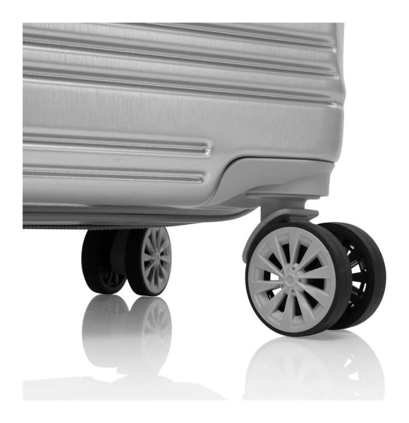 Kufr Heys AeroLite je vyroben z inovativního polykarbonátového kompozitu, který je nejen neuvěřitelně lehký, ale také vysoce odolný proti nárazům. Povrchová úprava s texturou broušeného kovu dodává zavazadlu luxusní vzhled a zároveň pomáhá maskovat případné škrábance. Pohyb po rušném letišti je snadný díky čtveřici hladkých dvojitých koleček otočných do všech směrů a lehké hliníkové rukojeti, jejíž výšku si snadno přizpůsobíte.